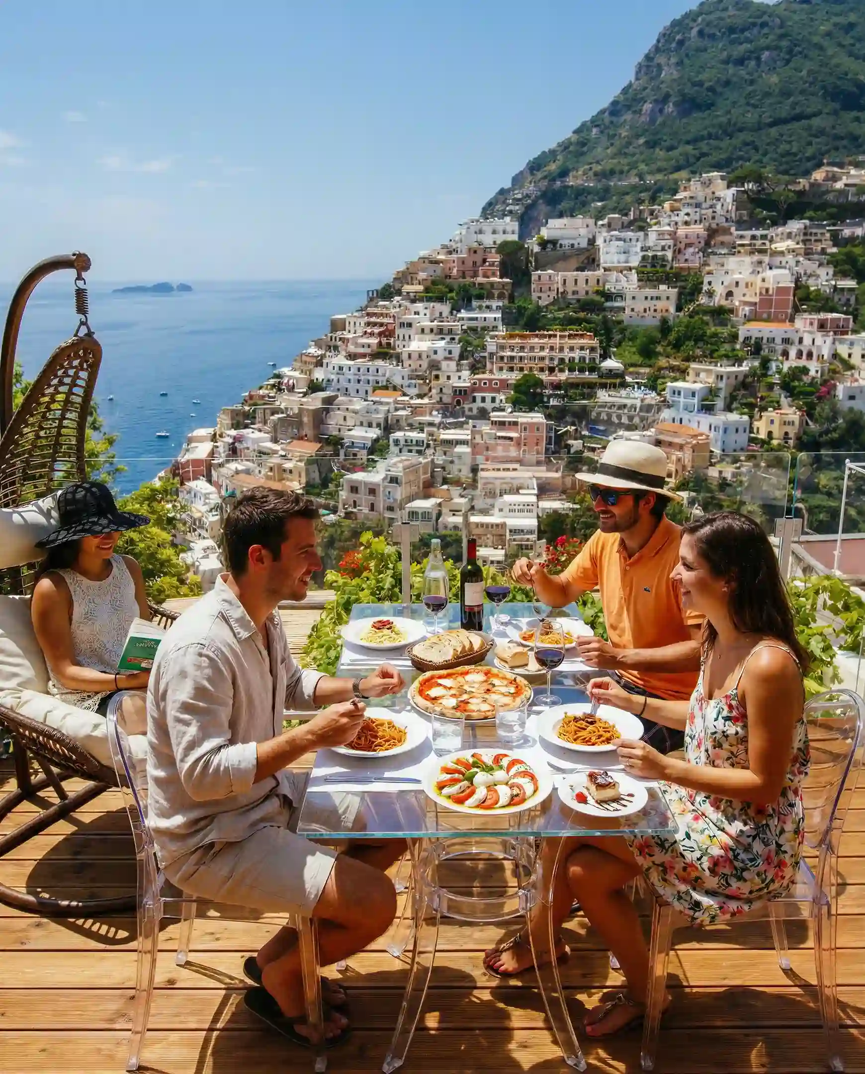 Enjoy a lunch on the rooftop's panoramicterraces, surrounded by lemon trees and lush vegetation, with a breathtakingview over Positano and the sea, immersed in natural light and the Italian "dolce vita."