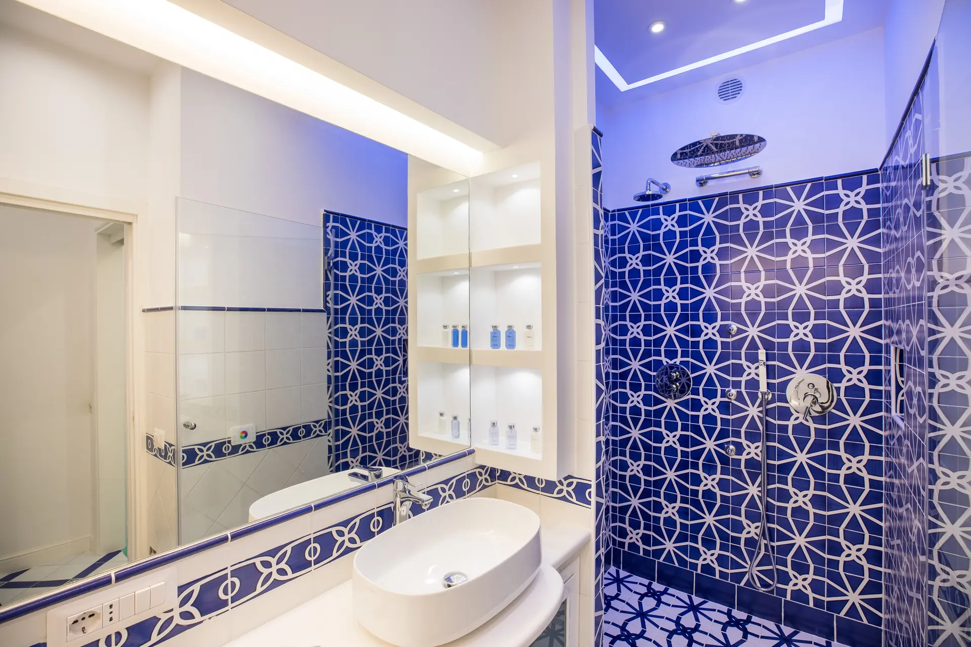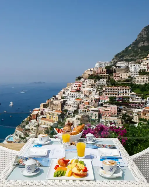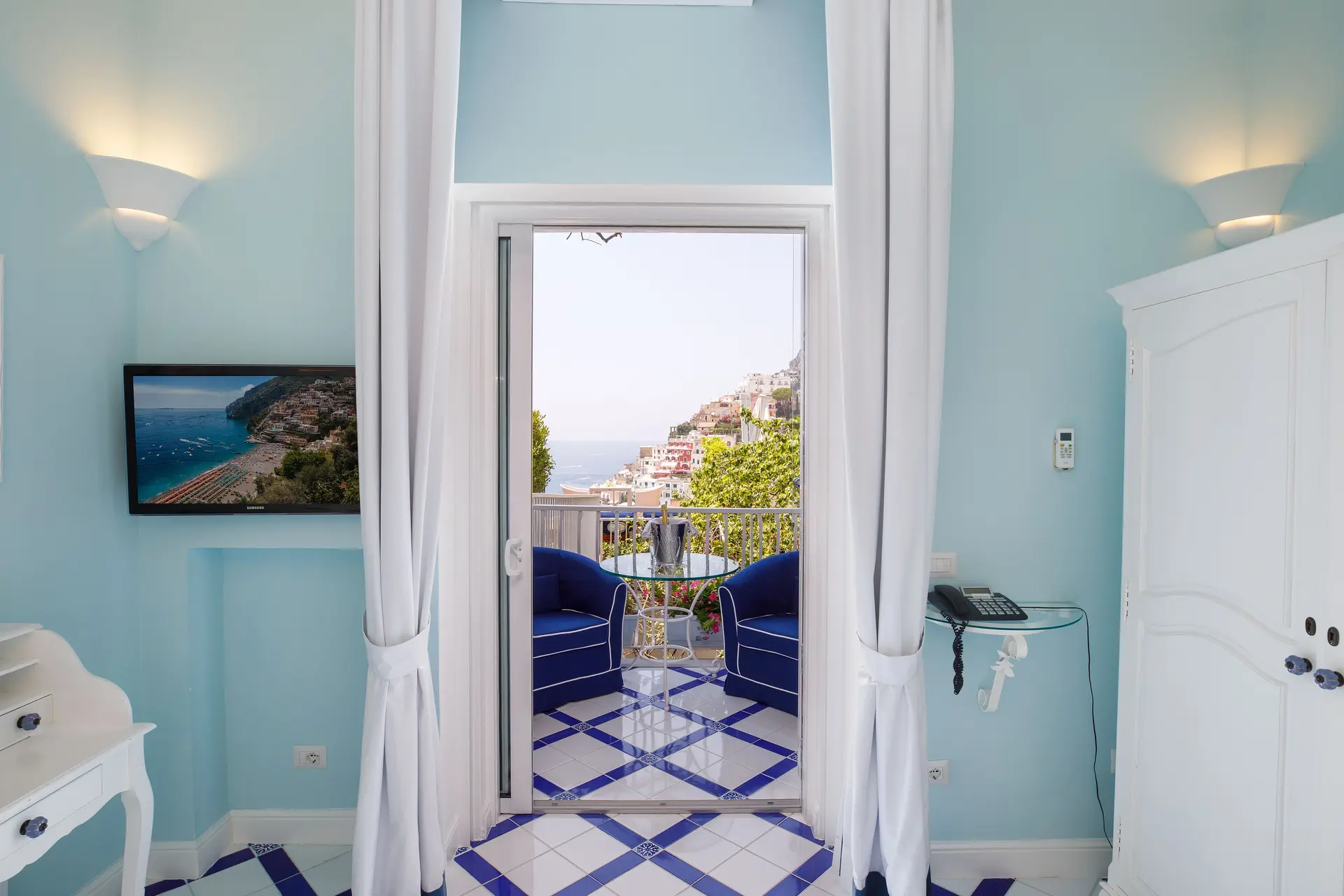 The panoramic Junior Suite ‘Primavera’ is an intimate retreat, where blossoming Mediterranean plants and flowers frame the breathtaking vista embracing Positano and the sea. In Mediterranean style with its design flooring, this suite features a luxurious king-size bed, a bathroom with a rejuvenating hydromassage shower and chromotherapy, and a kitchenette that includes a washer-dryer.